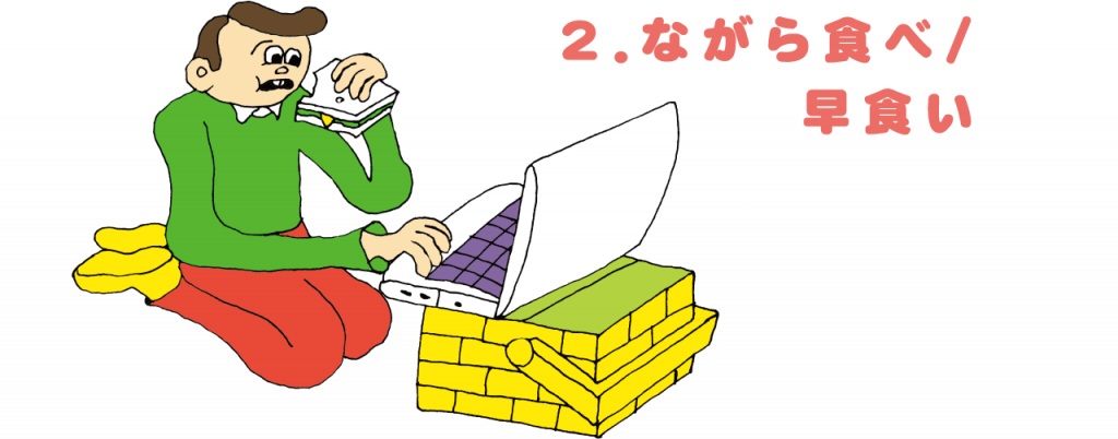 人は視覚で食欲が刺激され食事をとり、脳にある満腹中枢が刺激されることで満腹感を得ています。ところが、ながら食べは食事に意識が向かないため食べた量を認識しづらくなります。また、満腹中枢に刺激が伝わるまでにはタイムラグが。つまり、ながら食べ・早食いをすることで、満腹感を得る前に必要以上に食べてしまうのです…。