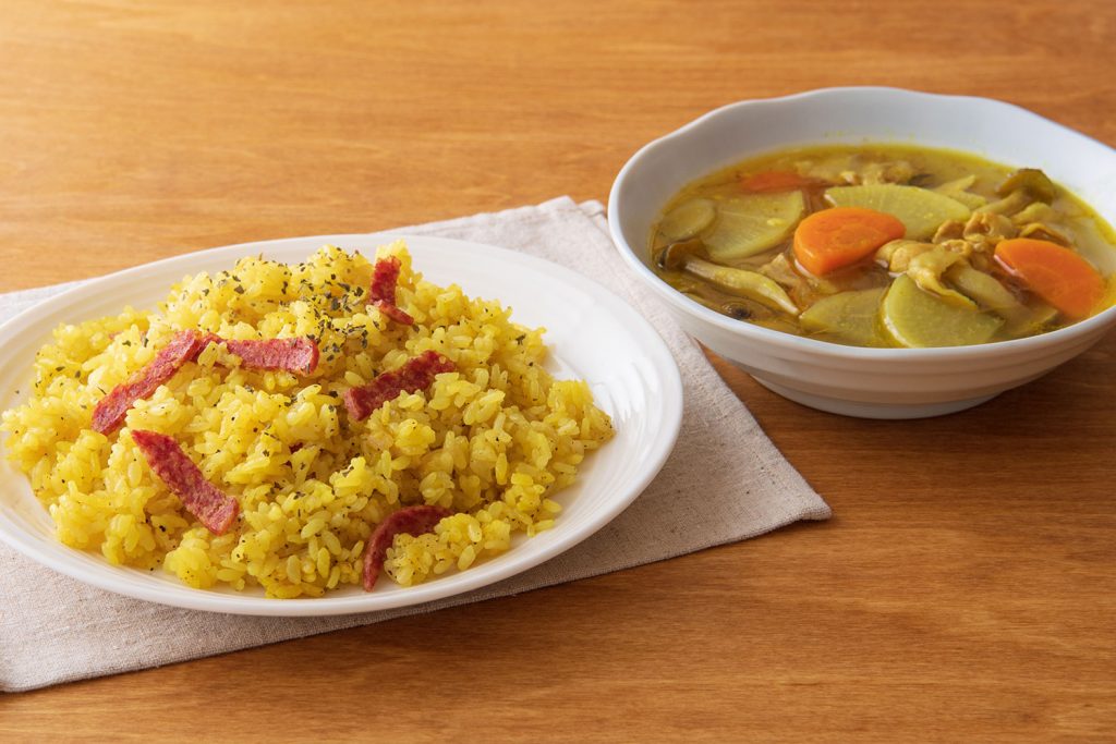 今月のテーマは「ターメリックで免疫アップ」。主役となるスパイス・ターメリックの鮮やかな黄色が、食欲をそそります。毎日のメニューで、スパイスを使い倒しましょう!