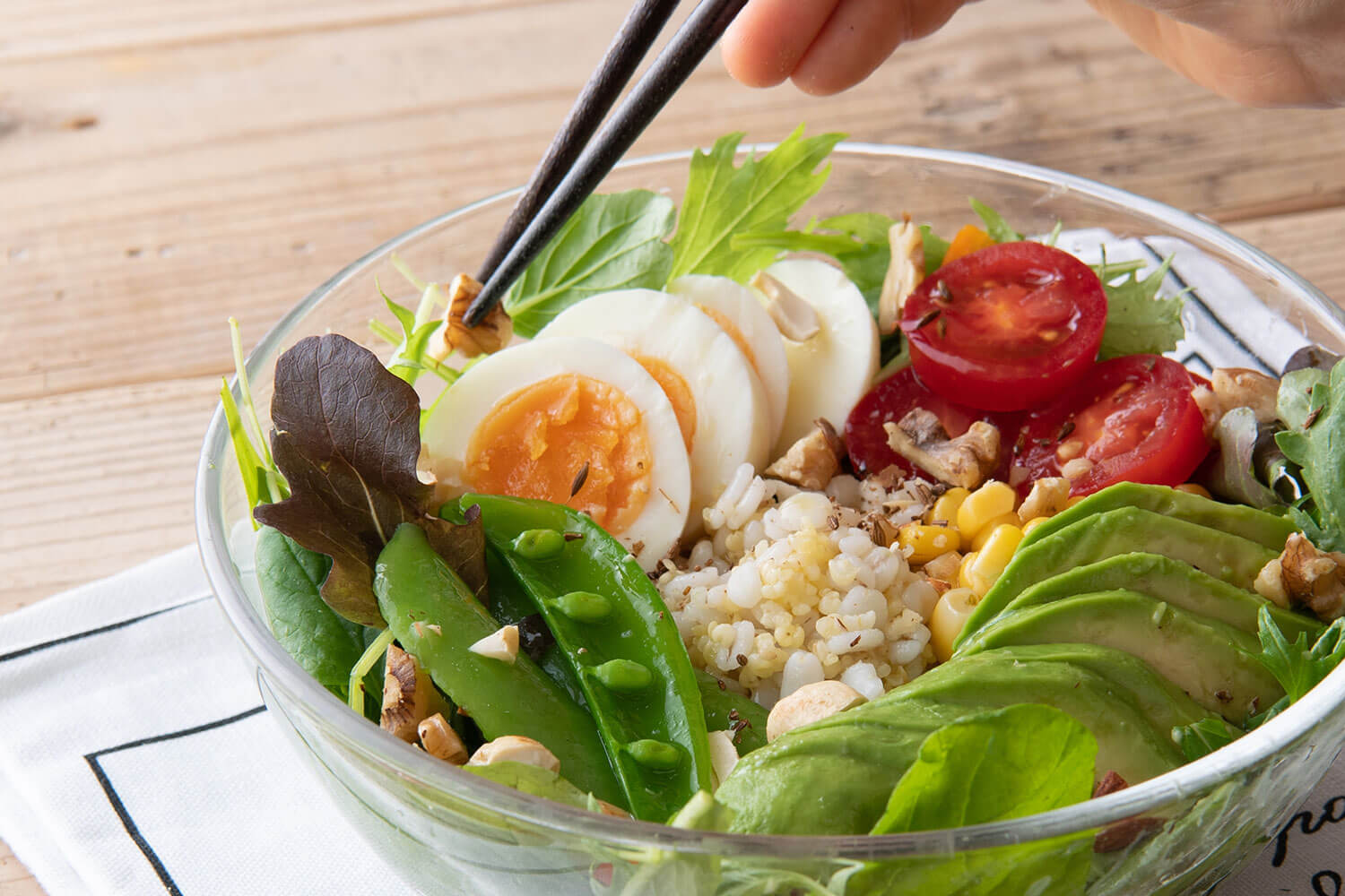 • ゆで卵 1個 *お好みで豆腐やツナ、鮭などのタンパク質を加えても