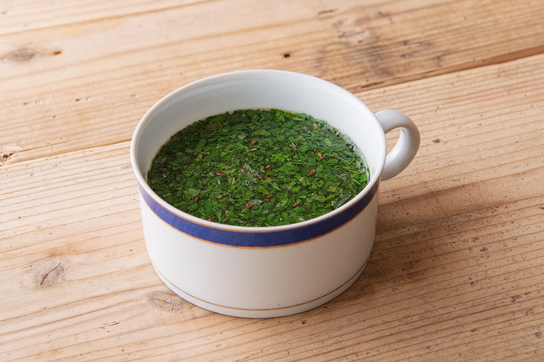 モロッコでよく使われる「モロヘイヤ」は、えごま×ツルムラサキのような香りで、スパイスとの相性も良い野菜です(女王クレオパトラも愛したとか)。ご家庭で登場する機会は多くないかもしれませんが、ほかの食材やいろいろな調理法との相性も良い食材。緑黄色野菜の栄養素とねばりのある食感が魅力です。今回は温かいスープとしてご紹介していますが、暑い時期は冷やしてもいいですね。クミンの香りと合わさって、食欲のないときでもサラサラ食べられますよ。モロヘイヤが手に入りにくい場合は、ほうれん草や小松菜でもOK。