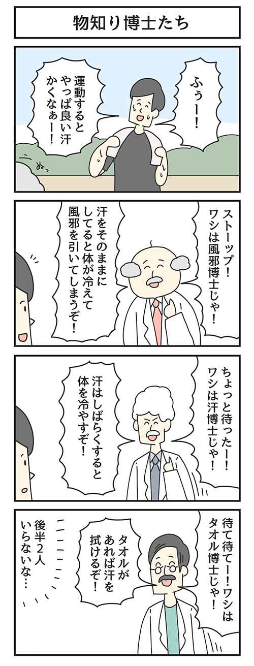読むと思わずクスっと笑ってしまう作風で、SNSを中心に絶大な人気を誇る漫画家・ジョンソンともゆきさん。そんなジョンソンともゆきさんが描く、「健康」をテーマにした4コマ漫画の連載企画! 第18回は、「物知り博士たち」「ずっとグダグダの視力検査」の2作品です。仕事や私生活で疲れがたまっているあなたに、ふっと肩の力が抜けるひとときをお届けします。